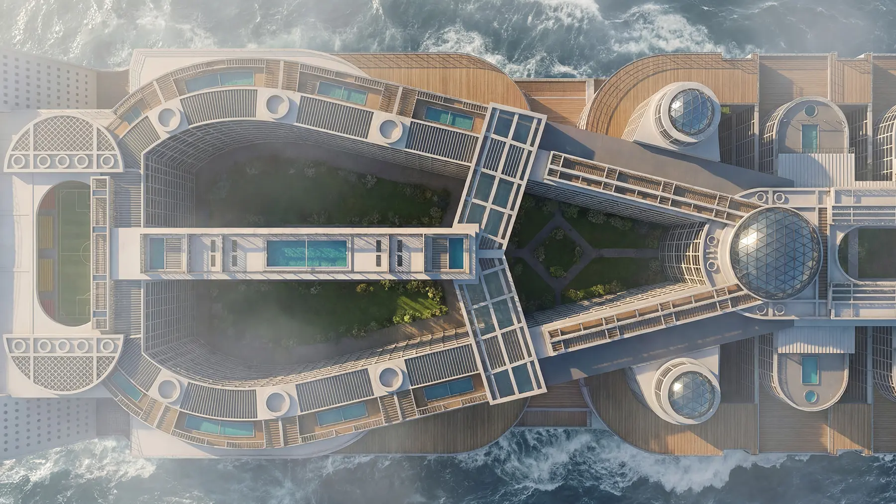 Life aboard the Freedom Ship is envisioned as daily urban life—reimagined within a permanently mobile setting. The project is designed for long-term inhabitants rather than short-term visitors, with the structures, services, and rhythms of a real city rather than a temporary destination.
